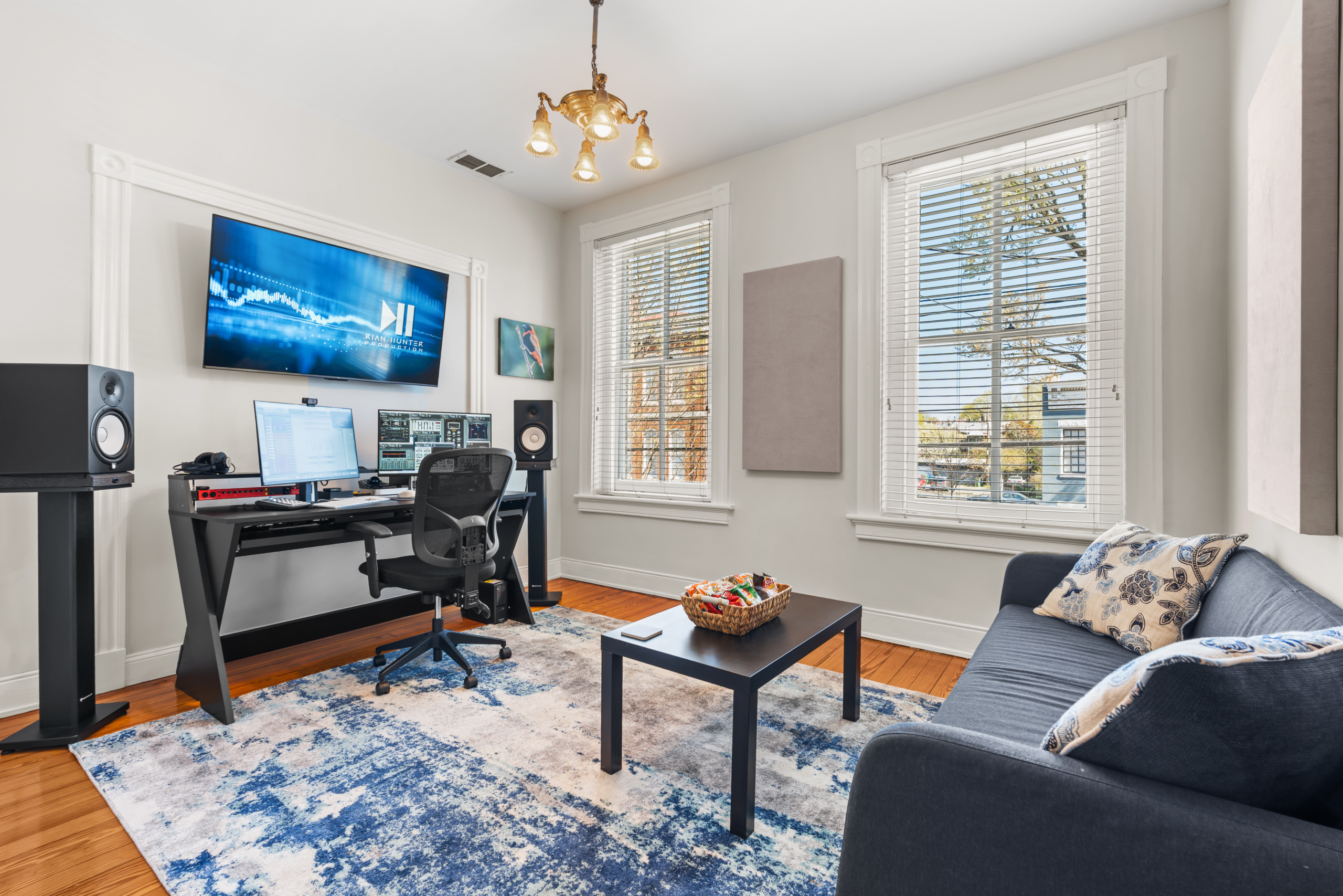 Known for our distinct point of view, high-level responsiveness, and elevated approach to all things audio, we have built a reputation for excellence that extends beyond the final product to the entire creative process. Opened in April 2025, the new location on W. Main Street in Richmond’s Fan District was thoughtfully designed with that philosophy in mind. The new space blends comfort and creativity – each suite reflects the personality of our founders and engineers. The result is an inviting environment where clients can relax, collaborate, and do their best work.